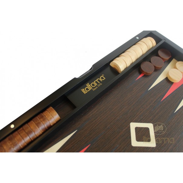 Backgammon en Bois de Rose à Cadre Rouge 38x38cm Fermé