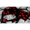 tandis que les cartes, noires, sont finement illustrées et lettrées en blanc et rouge.