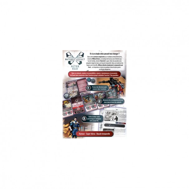 Avec un livret de scénario richement écrit, des références assumées aux comics et une forte rejouabilité grâce à ses multiples embranchements, Butterfly Effect : Alter Ego propose une aventure intense où narration, stratégie collective et exploration se mêlent pour offrir une expérience unique à chaque partie.