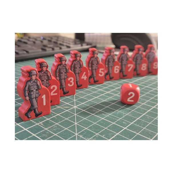 - 10 pions Ennemi dont 9 pions Patrouille et 1 pion Gestapo en bois