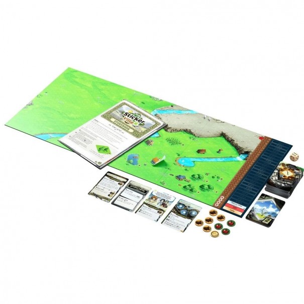 À chaque tour, les joueurs découvrent des événements narratifs riches en choix, placent des autocollants sur la carte pour développer bâtiments, habitants et lieux emblématiques, et gèrent collectivement des ressources comme le bois, la nourriture ou l’or.