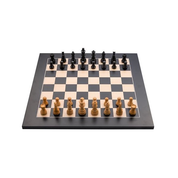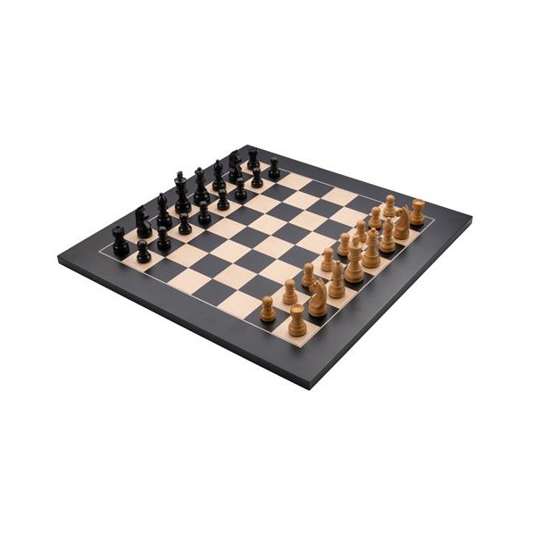 Jeu d'échecs de luxe en bois marqueté (érable) noir et naturel 40 x 40 cm
