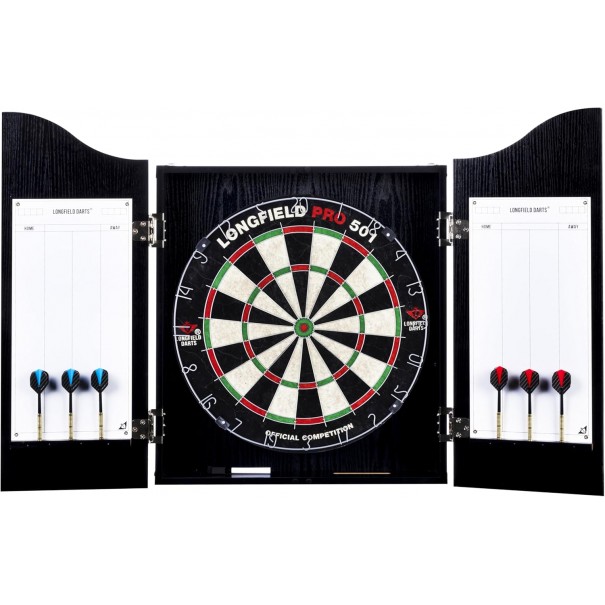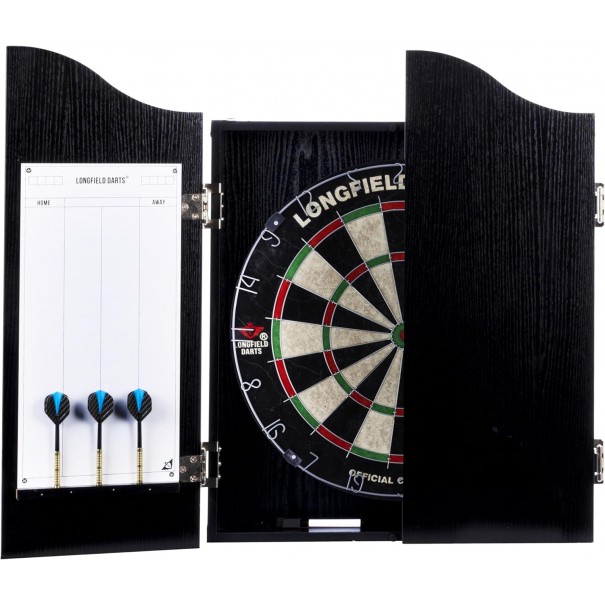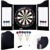 Armoire Cible en Bois Noir + Cible + 2 Jeux de Fléchettes