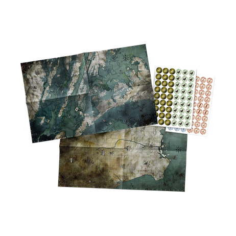 Set de Plans & de Jetons est composé de deux cartes A2 recto-verso présentant quatre Zones et de 108 pions pratiques