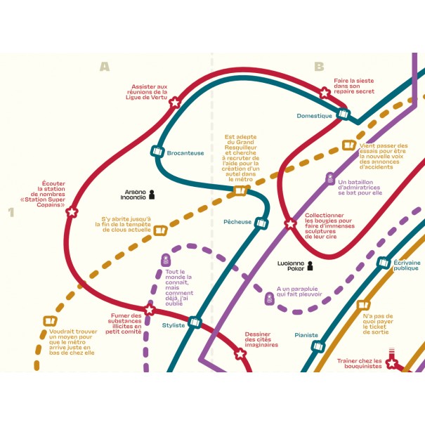 Des tables aléatoires sous la forme de lignes de métro, avec des dizaines, voire des centaines de stations pour générer des personnages et des amorces d'aventures étranges.
