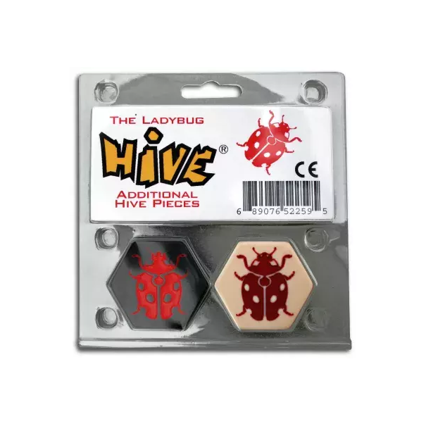 La coccinelle se déplace de 3 cases : 2 au-dessus de la Ruche, à la façon du scarabée, et 1 case vers le bas. La coccinelle doit forcément effectuer ces 3 déplacements et terminer par descendre de la Ruche.