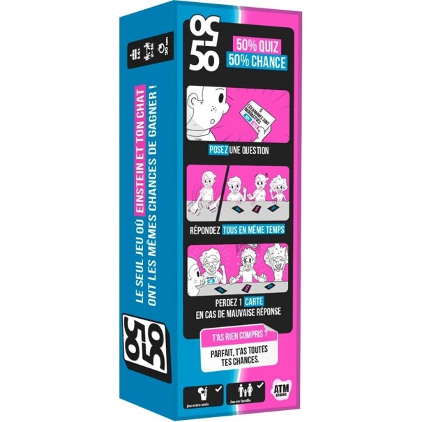 Avec 240 cartes bourrées de faits étonnants, 50/50 offre un savoureux mélange de culture G, de bluff, et de chance.