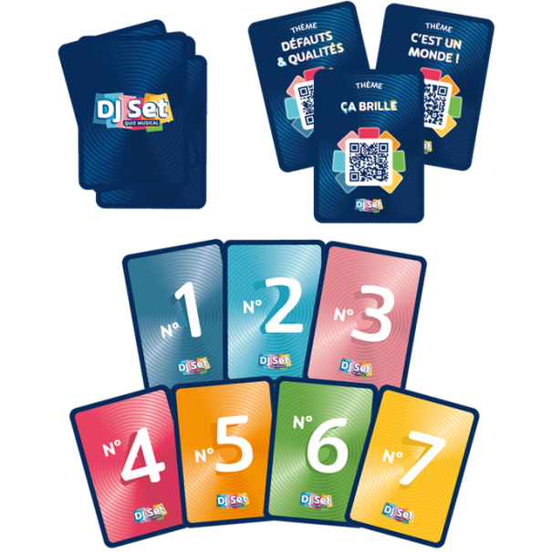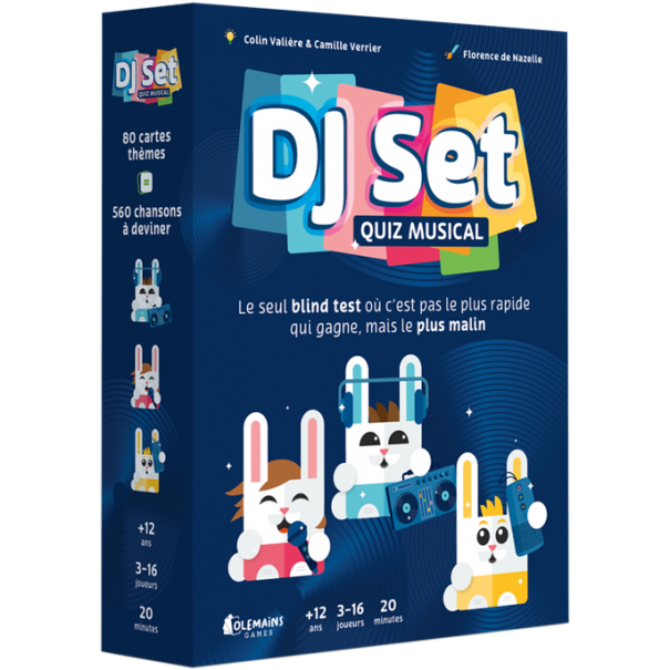 DJ Set - Quiz Musical est un jeu de société d'ambiance jouable de 3 à 16 joueurs, dès 12 ans pour des parties d'environ 20 minutes, édité par KYHU.