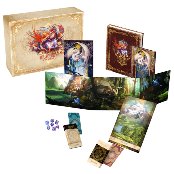 Draconis : L’Appel de l’Aventure - Boîte Collector contient la campagne L’Appel de l’aventure, ainsi que l’ensemble des accessoires et aides de jeu pour jouer en tout confort :
