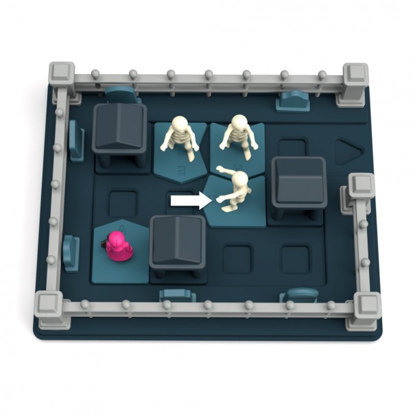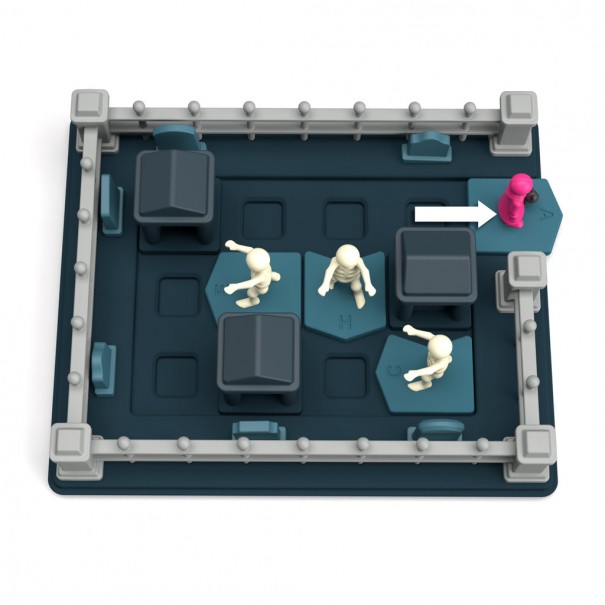 Vous voilà contraint d’aller le chercher. Malheureusement, vous êtes tombé sur un os ! Une horde de squelettes voraces vous barre le passage vers la sortie et est bien décidée à faire de vous son souper… « Tombe Frayeur » est un jeu de déplacement séquentiel dans lequel vous devrez planifier subtilement tant vos déplacements que ceux des squelettes afin de trouver votre unique chemin vers la sortie.