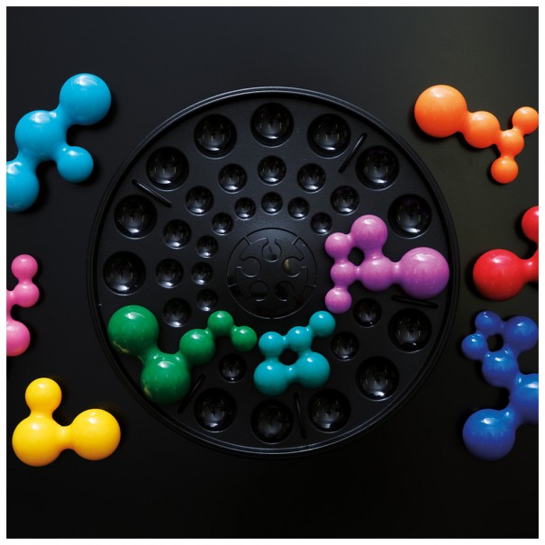 - Étape 1 : Choisissez un défi dans le livret. Placez les pièces sur le plateau comme indiqué dans le défi. Chaque pièce est composée de billes de différentes tailles. Les grosses billes correspondent aux emplacements sur le bord du plateau. Les petites billes correspondent aux emplacements au centre du plateau.
