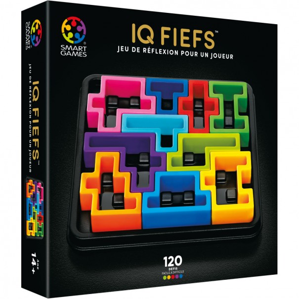 Mis à part la forme de son plateau, IQ Fiefs n’a rien de vraiment carré… Parviendrez-vous à placer toutes les pièces sur le plateau sans vous retrouver au pied du mur ? Avec ses 120 défis coriaces, ce jeu superbe est le cadeau idéal pour n’importe quel adulte averti… ou pour vous-même !