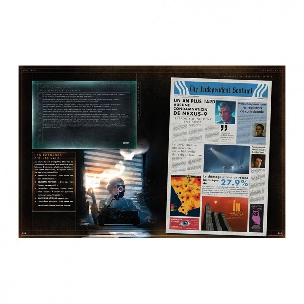 Dans le même format que le Dossier 01 : Rêves électriques (inclus dans le Kit de Démarrage de Blade Runner), le Dossier 02 : Les Anges en feu présente un nouveau scénario d’enquête palpitant et une myriade de documents, de photos et de plans intradiégétiques, et bien d’autres éléments.