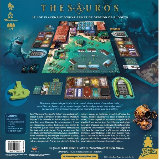 Dans le jeu Thesauros, chaque joueur dirige sa propre société de sauvetage en haute mer. Vous devrez recruter des ouvriers, développer des technologies de pointe, améliorer vos équipements et former vos équipes pour maximiser vos expéditions.