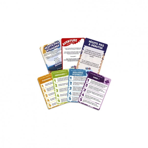 C'est drôle, accessible à tous les enfants (sages ou infernaux), et il y a de quoi faire : 162 cartes et 835 questions, avec la présence de cartes originales pour pimenter la partie. Et pour couronner le tout, d'astucieux stickers sont fournis afin de pouvoir jouer en famille sur un même plateau (TTMC 1 ou TTMC 2) !