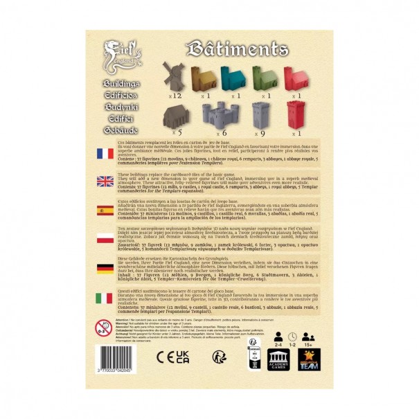 Les bâtiments remplacent les tuiles en carton du jeu de base Fief England.