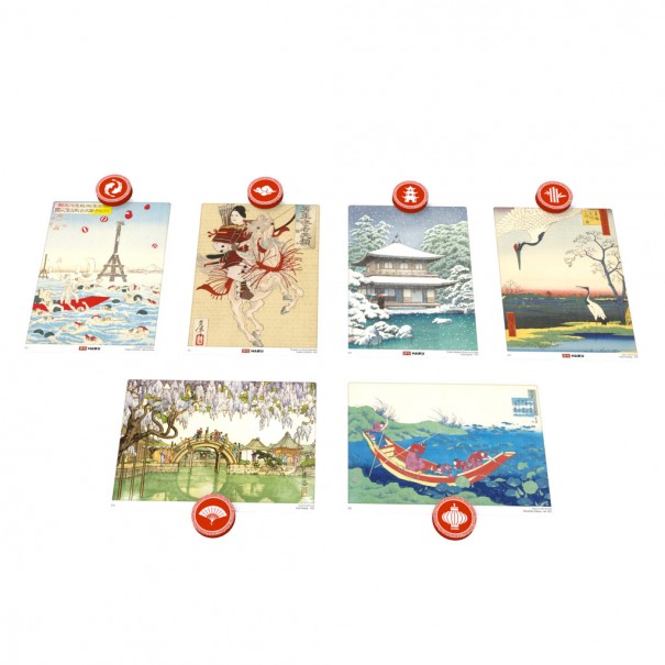 À chaque tour de jeu, 6 estampes japonaises sont présentées aux joueurs.