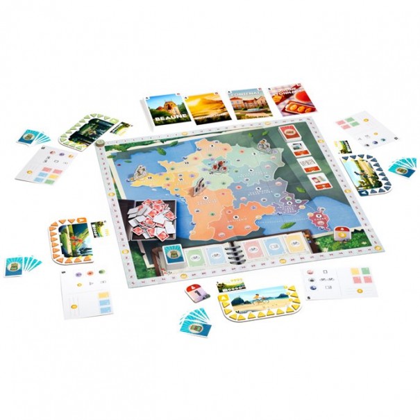 Postcards est un jeu simple qui plaira à toute la famille, mais qui propose également de nombreuses stratégies pour vous faire réfléchir pendant que vous jouez ! Conçu et illustré avec amour par une équipe de francophiles autoproclamés, Postcards vous donnera certainement envie de planifier votre propre voyage en France.