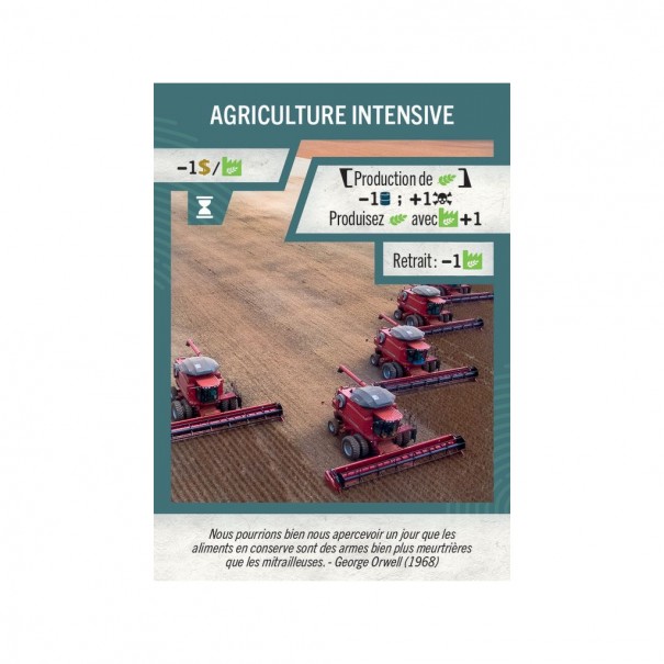 1) La phase Politique où vous prenez des décisions politiques. Piochez et jouez des cartes par paires en appliquant leurs effets : améliorer le niveau de vie de sa population, construire des usines, promouvoir le végétarisme, attaquer une Nation, avoir une production délocalisée, etc.