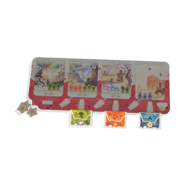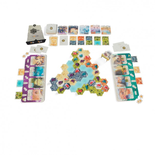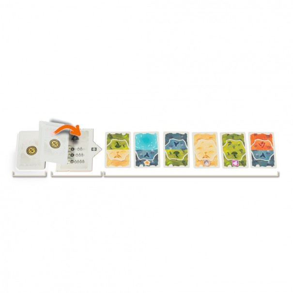 Pendant la partie, vous collectez des cartes Terrain et les utilisez pour placer stratégiquement vos camps sur le territoire.