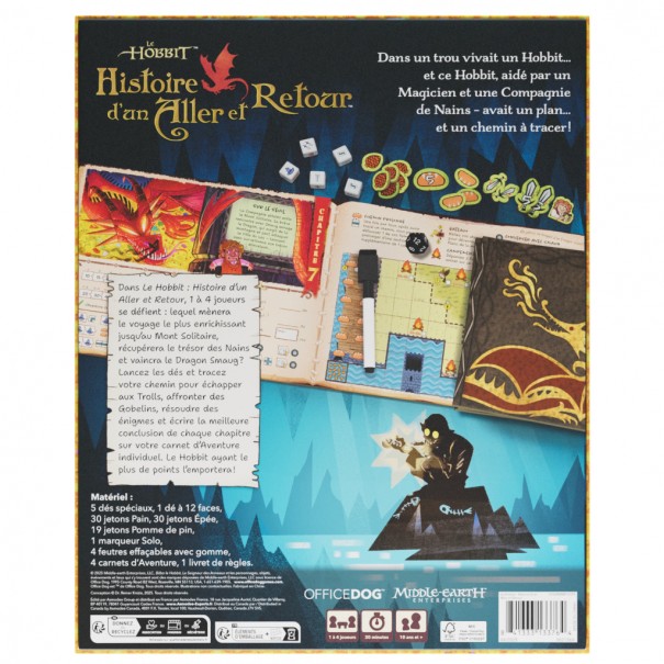 Lancez les dés et tracez votre chemin pour échapper aux Trolls, affronter des Gobelins, résoudre des énigmes et écrire la meilleure conclusion de chaque chapitre sur votre carnet d'Aventure individuel. Le Hobbit ayant le plus de points l'emportera !
