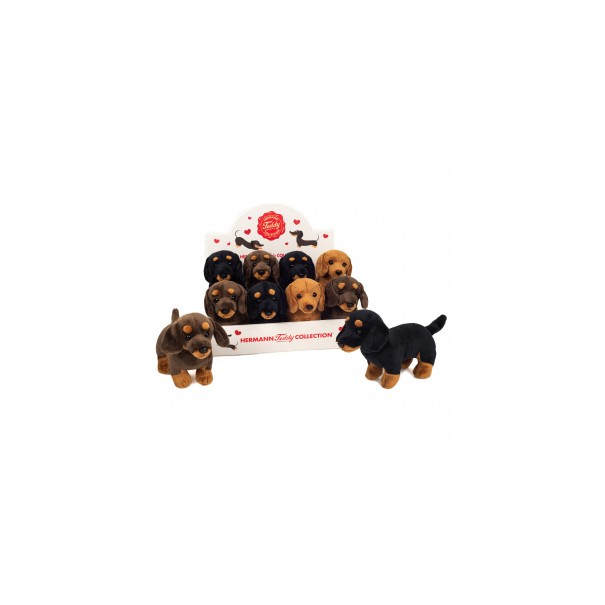Peluche Teckel debout 3 couleurs différentes 21cm
