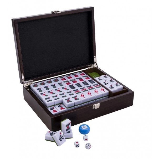 Mah Jong Boîte en Bois Noire 25,4×18×6,4cm