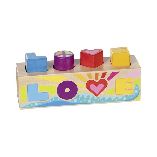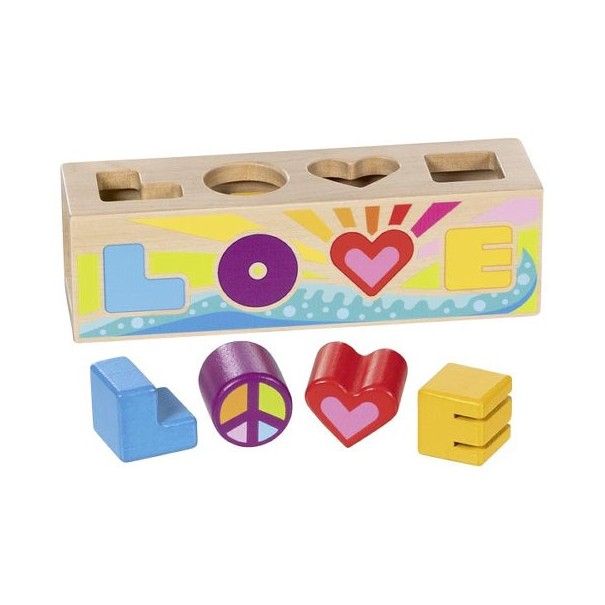 Découvre cette jolie boîte à formes en bois massif avec les lettres L, O, V, E .