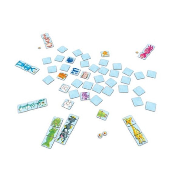 Toutes les tuiles, chacune représentant une partie du corps d'un animal, sont étalées faces cachées.