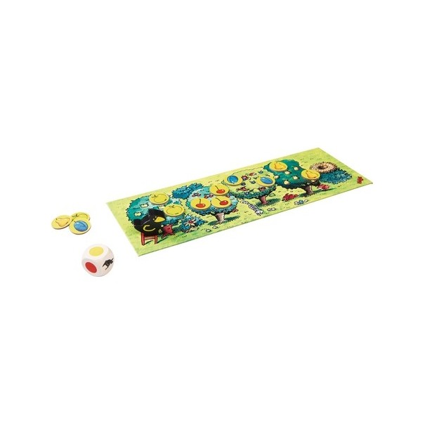 Contenu: 1 corbeau, 1 plateau de jeu, 12 fruits, 1 dé multicolore à symboles,