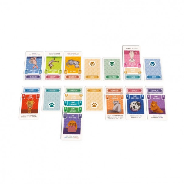 Disposez 7 cartes Jour devant vous pour constituer votre semaine. Le but du jeu est de cumuler le plus de points en posant un chat sur chacun de ces jours.