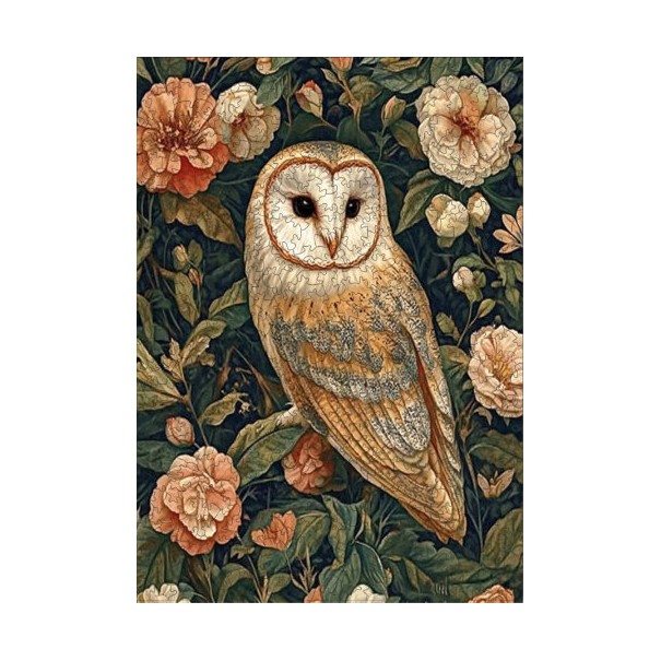 Apportez une touche de poésie sauvage à votre intérieur avec ce puzzle chouette florale,