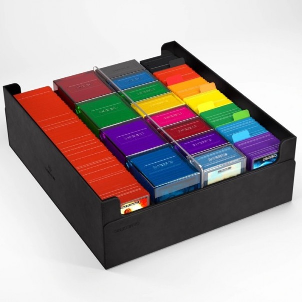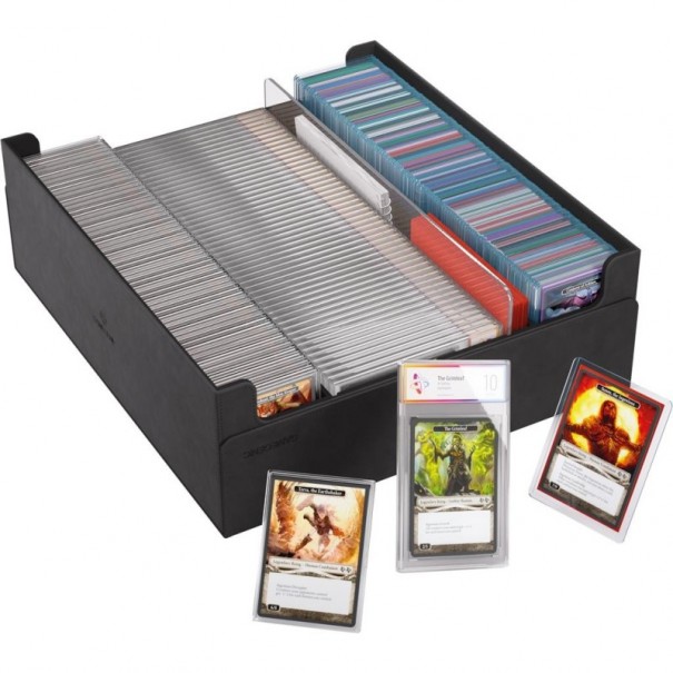 Le COLLECTORS' LAIR 2000+ est un véritable miracle en matière de rangement : non seulement il peut contenir des cartes sans pochette, à pochette simple ou double, mais il peut également accueillir des pochettes TOPLOADING, des étuis à cartes Slide, des étuis de classement de cartes et des étuis magnétiques.
